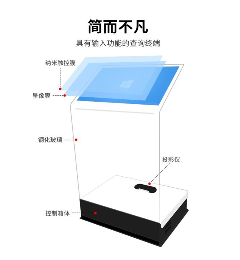 空靈觸控一體機(jī)是一臺(tái)觸摸式的新型設(shè)備,擁有震懾人心的直立式俊美外觀,透明的機(jī)身與外環(huán)境的高度融合,絲毫不影響場(chǎng)地的環(huán)境風(fēng)格和布局。同時(shí),如同瀑布般一瀉而下的設(shè)計(jì)可將成像效果展現(xiàn)得淋漓盡致。區(qū)別于傳統(tǒng)的投影產(chǎn)品,空盈運(yùn)用了高科技的成像膜和觸摸組件,使投影的影像可直接呈現(xiàn)在透明的玻璃屏幕上。